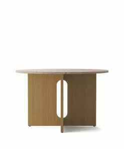 Androgyne Dining Table rund är ytterligare en tillökning för Danielle Siggeruds eleganta bordsserie Androgyne för Menu. Serien innefattar nu en rad olika soffbord och matbord, både med runda och rektangulära bordsskivor. Det runda matbordet finns i två olika storlekar, antingen 120 eller 150 cm i diameter. Bordet går att beställa antingen helt i ek eller i en mörkbetsad ek, det mindre bordet går även att få med toppskiva i Kunis Breccia marmor.