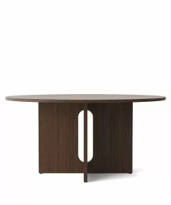 Androgyne Dining Table rund är ytterligare en tillökning för Danielle Siggeruds eleganta bordsserie Androgyne för Menu. Serien innefattar nu en rad olika soffbord och matbord, både med runda och rektangulära bordsskivor. Det runda matbordet finns i två olika storlekar, antingen 120 eller 150 cm i diameter. Bordet går att beställa antingen helt i ek eller i en mörkbetsad ek, det mindre bordet går även att få med toppskiva i Kunis Brescia marmor.