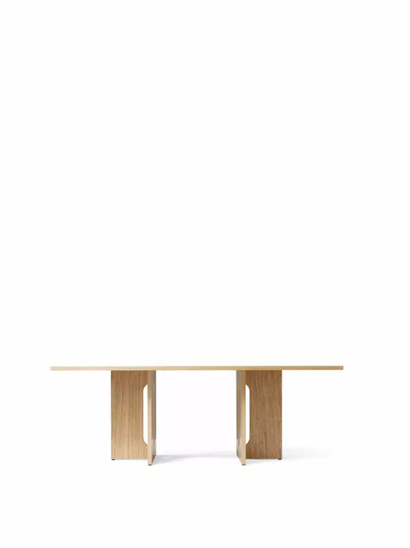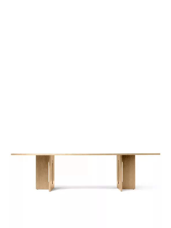 Androgyne Dining Table Rectangular är ytterligare en tillökning för Danielle Siggeruds eleganta bordsserie Androgyne för Menu. Serien innefattar nu en rad olika soffbord och matbord, både med runda och rektangulära bordsskivor. Det rektangulära matbordet finns i två olika storlekar i dimensionerna 210×100 och 280×110 cm, vilket även öppnar upp för användning som exempelvis konferensbord. Namnet Androgyne kommer från blandningen av maskulinitet och femininitet i bordets utformning.