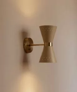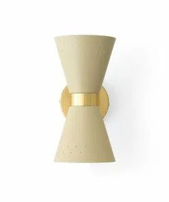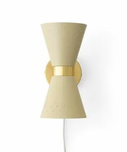 Den svenska formgivaren Alf Svensson utformade belysningsserien Collector på 1950-talet. Utöver de två ljuskronorna finns också denna väggmonterad lampa. Vägglampan definieras av sitt solida mässingsband som håller en konisk, crémefärgad metallskärm som projicerar ljuset i två riktningar. Små perforeringar i skuggan låter ljuset skina igenom.