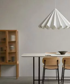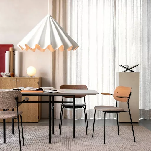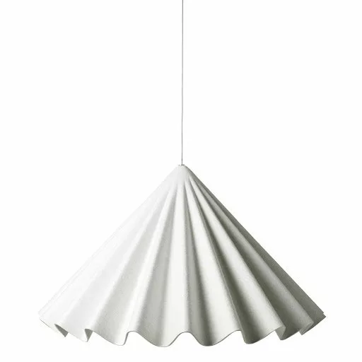 Design handlar om berÀttande enligt Köpenhamnsduon Iskos-Berlin, i Dancing Pendant för Menu sÀtter de sitt pÄstÄende i praktiken. Lampan ser ut som en dansares plisserade kjol, fÄngad i ögonblicket dÄ den börjar lÀtta mitt i en snurr. Lampan Àr tillverkad i Ätervunnen PET-filt och ger ett mjukt men skulpuralt intryck dÀr den hÀnger.