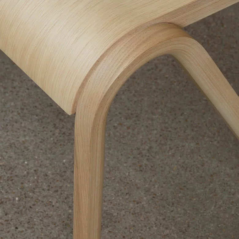 Ready dining chair Ă€r resultatet av en studie av möjligheterna med formpressningstekniker, skapad för MENU av Matias MĂžllenbach och Nick Rasmussen. Stolen tar sin inspiration frĂ„n klassiska frisvĂ€ngande stolsdesigner, dess fribĂ€rande sits och ryggstöd ser ut som om de hĂ€nger i luften. TillgĂ€nglig i FSCâą-certifierad ekfanĂ©r, gĂ„r stolen att bestĂ€lla med en naturlig eller svart- eller rödbetsad ekfinish. Ready dining chair gĂ„r att stapla med upp till 10 stolar pĂ„ höjden.