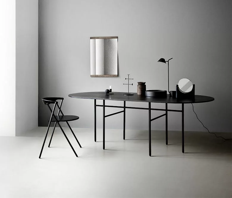 Snaregade Àr en serie av bord och finns i rektangulÀrt, runt och ovalt. De har en tidlös och praktisk design. Formen pÄ benstÀllningen Àr mycket genomtÀnkta och formade för att maximera utrymmet för ben och stolar. Perfekt matbord eller som arbetsyta. Och namnet? Snaregade Àr namnet pÄ gatan i Köpenhamn dÀr Norm Architects har sin studio.