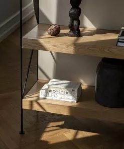 Material: StÀllning i stÄl och hyllplan i ek