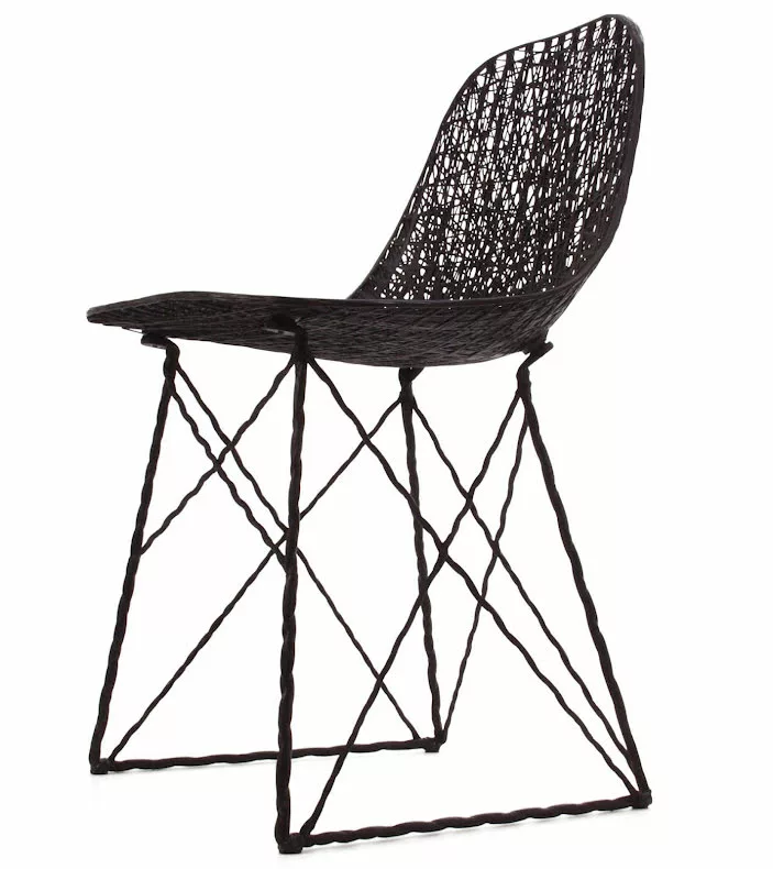 Carbon chair frÄn Moooi, formgiven av Bertjan Pot (2004) Àr en ytterst lÀtt stol med en intressevÀckande design. Kan anvÀndas bÄde inomhus och utomhus.