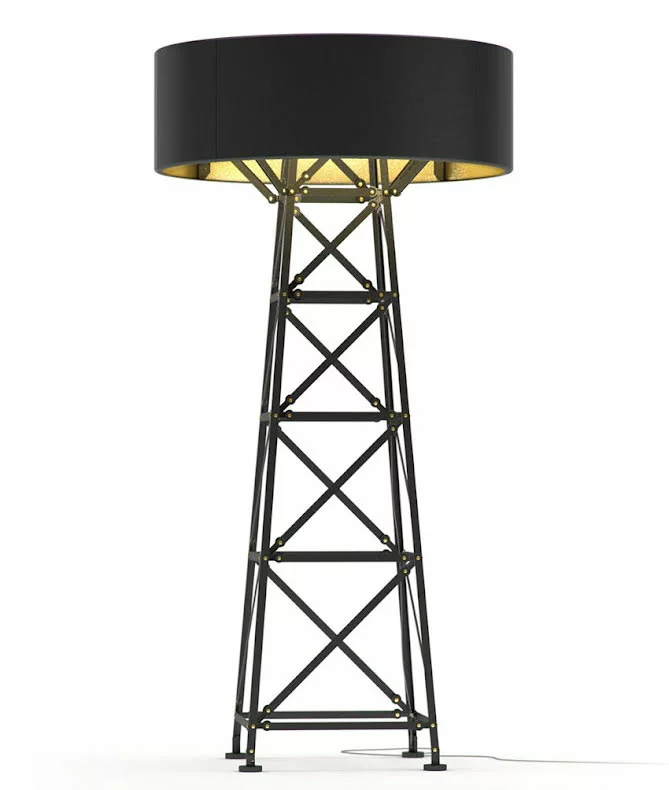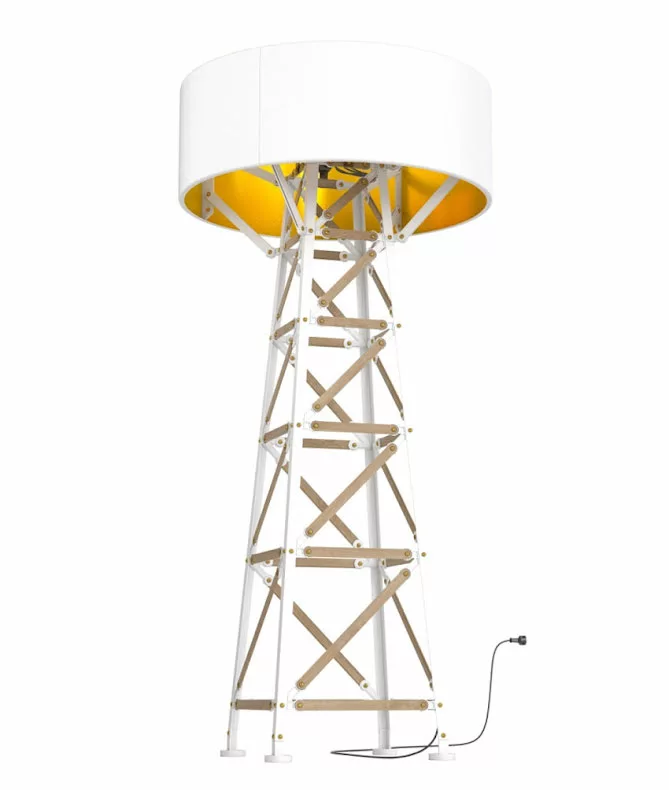 Den hĂ€r magnifika golvlampan Ă€r inspirerad av historisk byggnadskonstruktion. Construction Lamp blir mittpunkten var den Ă€n placeras. Den finns i tre olika storlekar, i svart eller vitt/trĂ€.Â