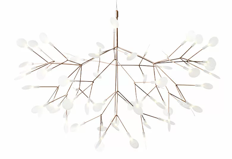 Magnifik takkrona frĂ„n Moooi, inspirerad av blomman Björnloka i formen. Lampan Ă€r uppbyggd av totalt 63 LED-lampor dĂ€r varje lampa Ă€r ett ”blad”. Heracleum Ă€r gjord i metall och polykarbonat. Formgivare Ă€r Bertjan Pot som ocksĂ„ designat Mooois storsĂ€ljare Random Light. Heracleum finns i nickel, koppar, vit och grön.