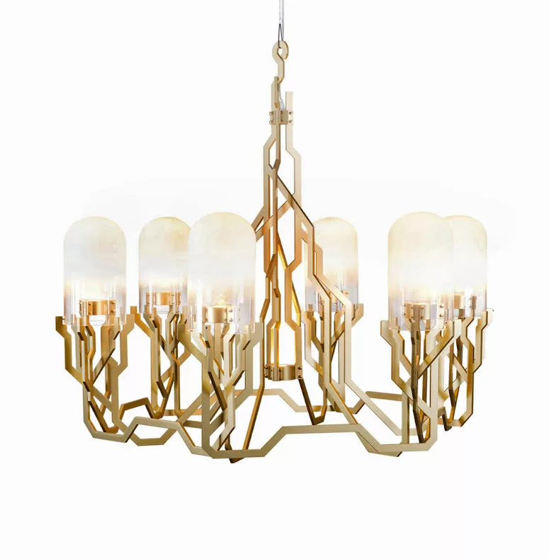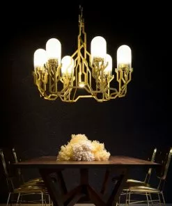 Plant fĂ„ngar det arkitektoniska i naturens design, med grenar som vĂ€xer och sprider sig i bestĂ€mda riktningar. ObegrĂ€nsad av kablar eller elledningar Ă€r Plant Chandelier fri att elegant blomstra mot taket. Dess silhuett följer anatomin frĂ„n solkyssta trĂ€dgrenar med en gyllene glöd, som strĂ„lar samman till frostade kupoler av ljus.Â