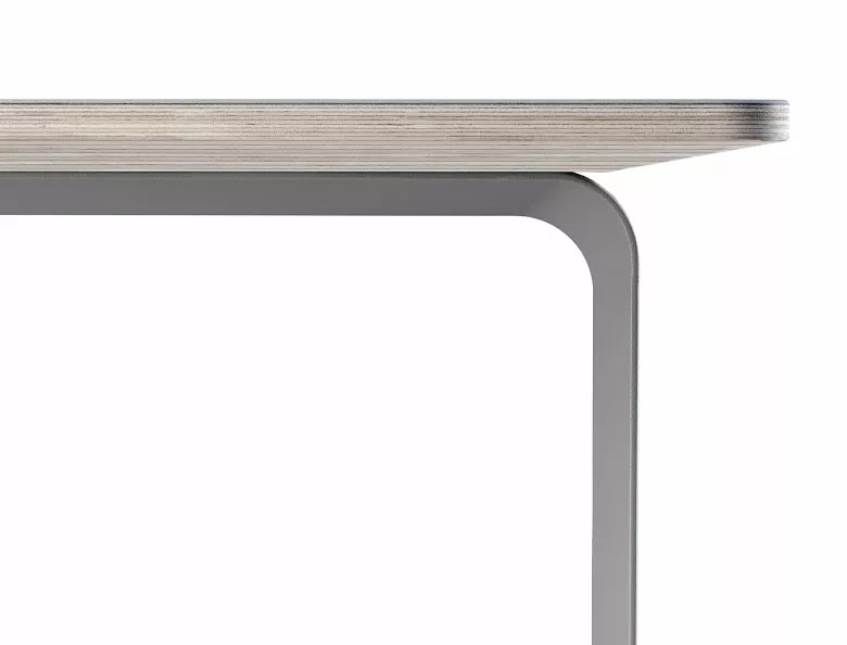 Material:Â Skiva i plywood, Benstativ i gjuten aluminium.