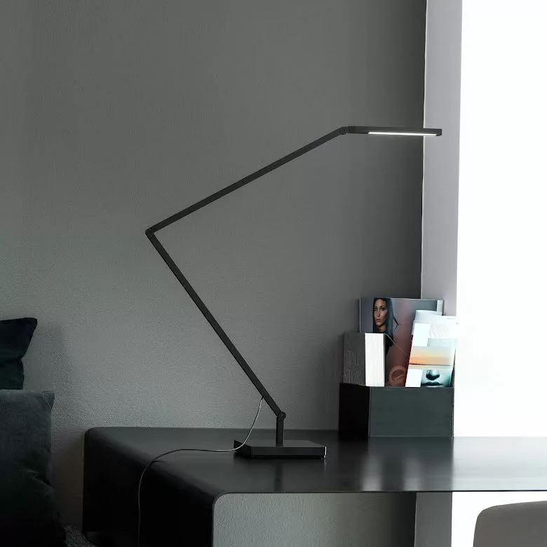 Untitled Table Linear Ă€r en bordslampa i minimalistisk design. Armaturen kan rotera och vridas pĂ„ flera olika punkter, vilket gör att den lĂ€mpar sig utmĂ€rkt som arbetslampa.Â