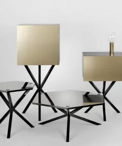 Det lilla skåpet från No Early Birds passar bra som barskåp men kan förstås användas till annan förvaring också. Det har de karaktäristiska kryssbenen i metall.