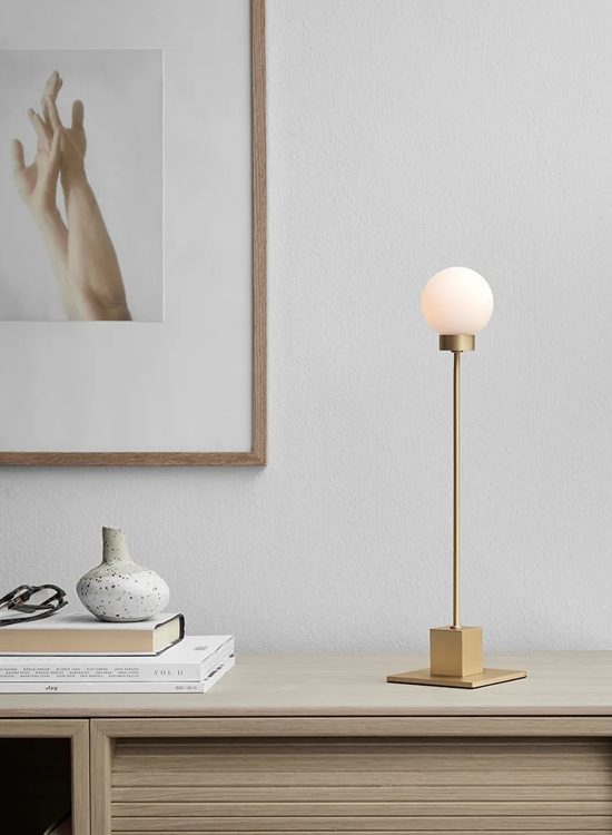 Snowball Àr en minimalistisk bordslampa med munblÄst glas i formen av just en snöboll. Med vackra linjer och en ren konstruktion ger denna lampa ett modernt och avskalat intryck som passar i alla rum.