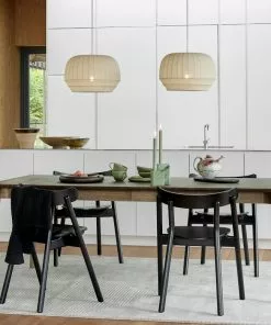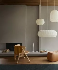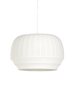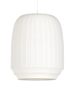 Tradition takpendel, frÄn den norska designduon Morten & Jonas för Northern, Àr en modern version av ett anrikt hantverk. Lampan finns tillgÀnglig i tre former och har en distinkta design med sin finstickade skÀrm i polyestervÀv. Den tubformade vÀven strÀcks försiktigt över sin vita metallram innan den fÀsts upptill och nedtill. Strömkabeln kommer dold i en sidensladd.