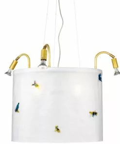 Cirkus har en stomme i naturoxiderad mässing. Tre riktbara spottar samt 4 ljuskällor för allmänljus. Textilskärm i två varianter – med eller utan flugor.