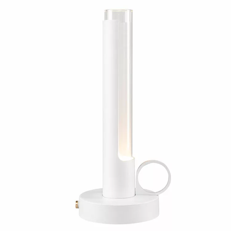 Visir bordslampa är en hommage till den portabla nattoljelampan. Pierre Sindre har med ny teknik med LED ljuskällor och effektiva laddningsbara batterier skapat en lampa som kan bäras med för att lysa upp mörka utrymmen. Visir är perfekt att ta med sig ut på altanen en mörk augustikväll eller att ställa på matbordet för att skapa en vacker stämning med sitt klarglasrör och metallvisir. Visir är dimbar och har en brinntid på ca 8 timmar och laddas med trådlös QI laddare (medföljer ej). Visir finns tillgänglig i fyra olika utföranden.