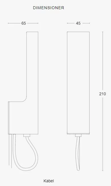 Mått: H 21 cm, B: 4,5 cm, D: 6,5 cm