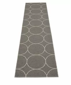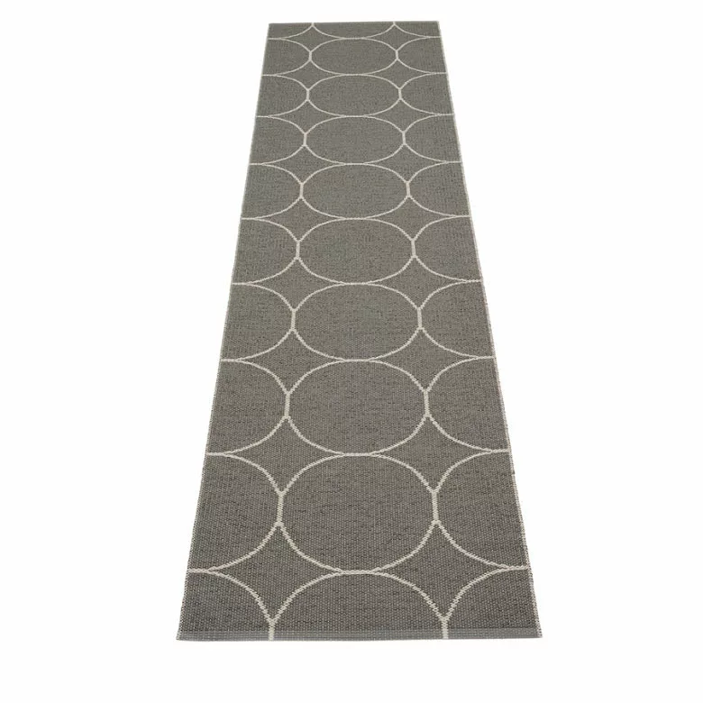 Plastmatta Boo i fĂ€rgen charcoal-vanilla Ă€r vĂ€ndbar och har ett omvĂ€nt mönster pĂ„ andra sidan.Â