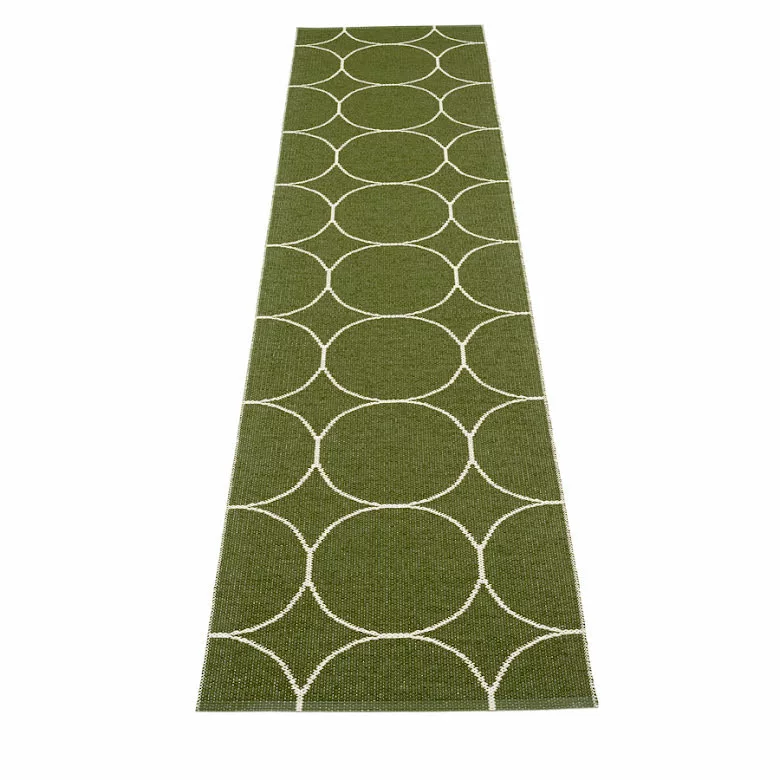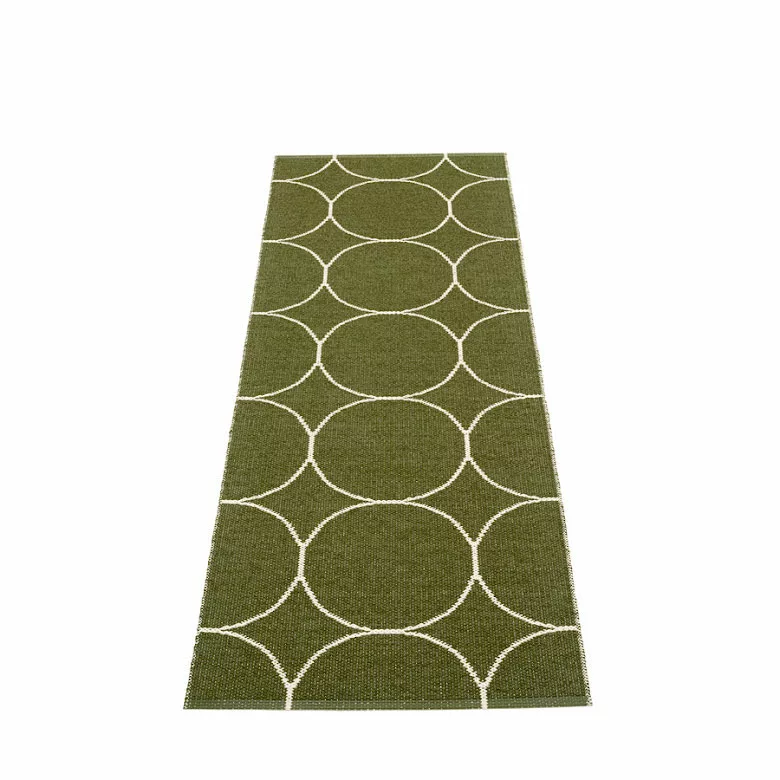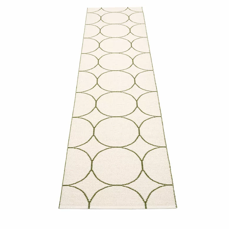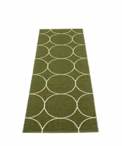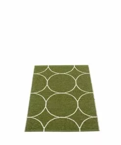 Plastmatta Boo i fĂ€rgen dark olive-vanilla Ă€r vĂ€ndbar och har ett omvĂ€nt mönster pĂ„ andra sidan.Â