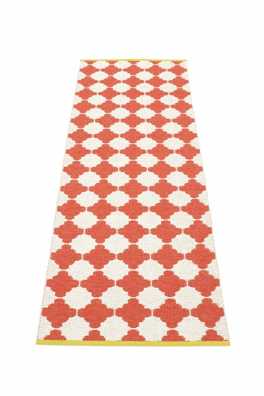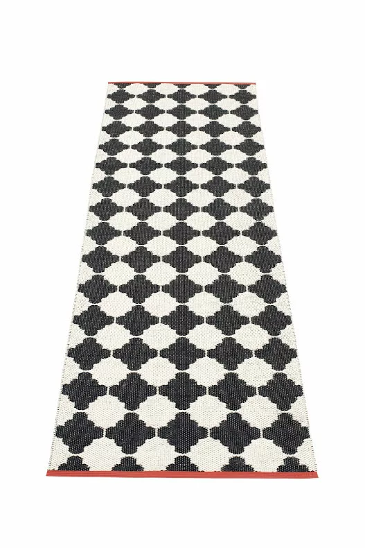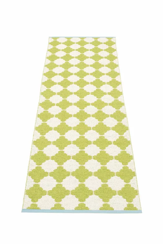 Plastmatta för inom- och utomhusbruk, tillverkad i Sverige. Mattan gÄr att vÀnda pÄ och pÄ sÄ sÀtt fÄ tvÄ olika mönster.