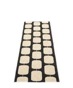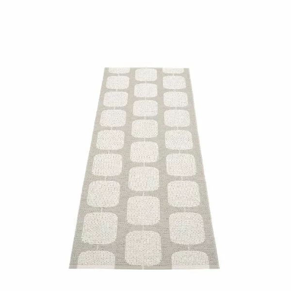 Sten plastmatta frÄn Pappelina vÀvs pÄ ett traditionellt vÀveri i Sverige. Att vÀva i plast Àr en svÄr och lÄngsam process dÀr hantverket stÀndigt Àr nÀrvarande.