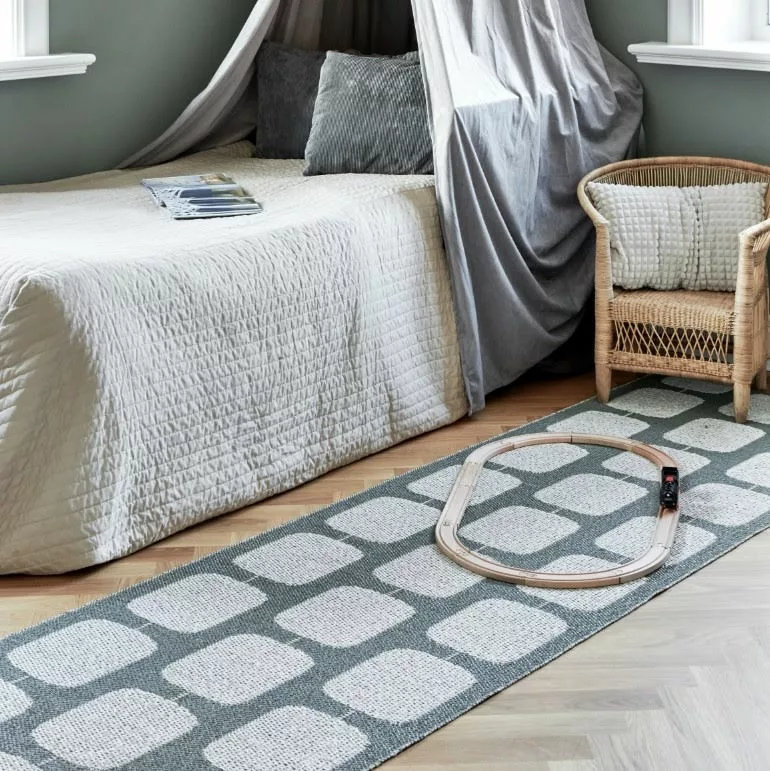 Plastmatta för inom- och utomhusbruk, tillverkad i Sverige. Mattan gÄr att vÀnda pÄ och pÄ sÄ sÀtt fÄ tvÄ olika fÀrger.