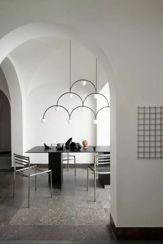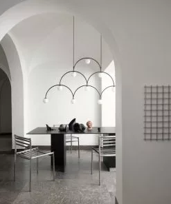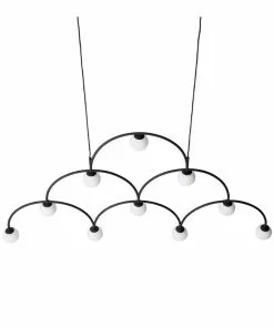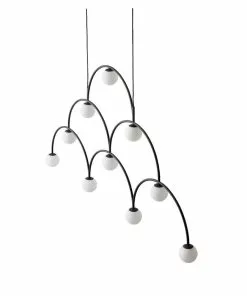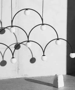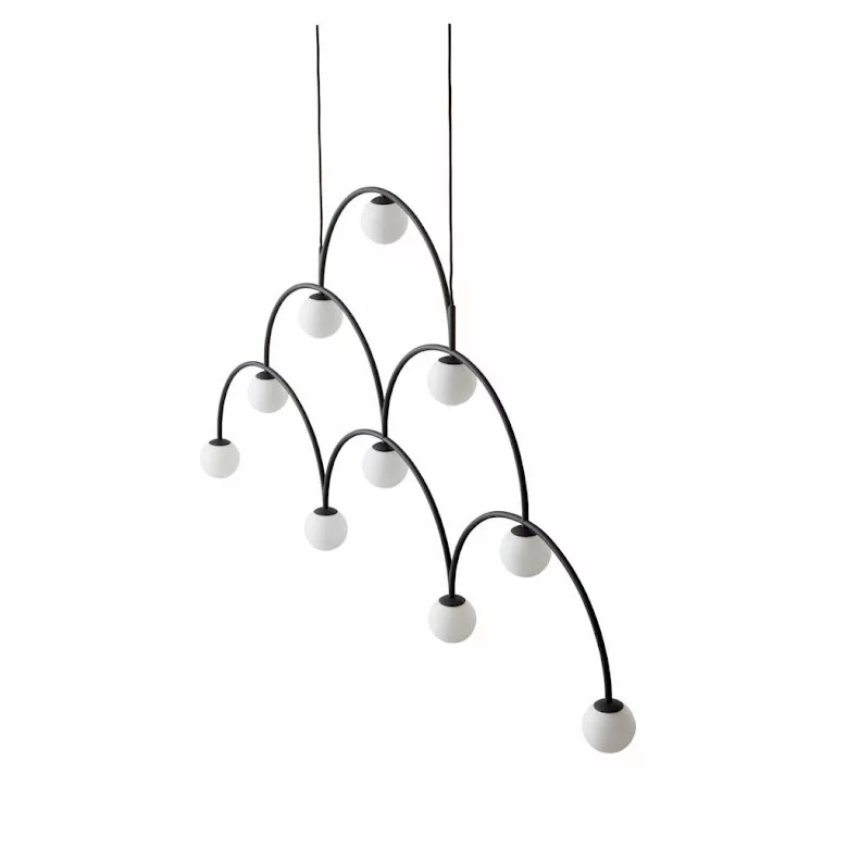 Grafisk och energisk, lampan Bounce 169 har en levande karaktÀr. Med en form som informeras av vÀgen elektriciteten kommer att fÀrdas frÄn lampa till lampa, Àr Bounce en expansiv monokromatisk pjÀs som drar uppmÀrksamhet till sig. Den platta, skÀrmliknande armaturen passar sÀrskilt bra nÀr den placeras ovanför avlÄnga bord eller bÀnkar; dess opalglas ger ett konsekvent, kontrollerat ljus. I Bounce-serien finns Àven en mindre lampa kallad Bounce 116