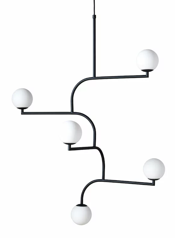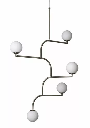 Mobil 100 Ă€r en spĂ€nnande taklampa av Monika Mulder för Pholc. En lampa bestĂ„ende av 4 olika delar som Ă€r kopplade till varandra. Varje del gĂ„r att vrida vilket gör att det ser ut som en mobil. En mindre taklampa en vĂ€gglampa och en bordslampa ingĂ„r i samma serie.Â