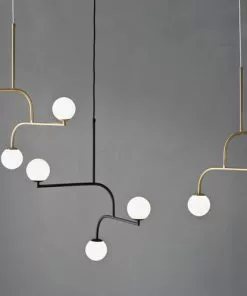 Material: Borstad mĂ€ssing/vit textilsladd, stĂ„l(nickel)/vit textilsladd, svartlackat stĂ„l/svart textilsladd. Runda ljuskĂ€llor i opalglas.Â