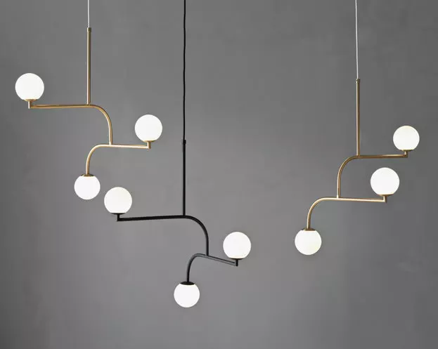 Mobil 70 Ă€r en spĂ€nnande taklampa av Monika Mulder för Pholc. En lampa bestĂ„ende av 3 olika delar som Ă€r kopplade till varandra. Varje del gĂ„r att vrida vilket gör att det ser ut som en mobil. En större taklampa, en vĂ€gglampa och en bordslampa ingĂ„r i samma serie.Â