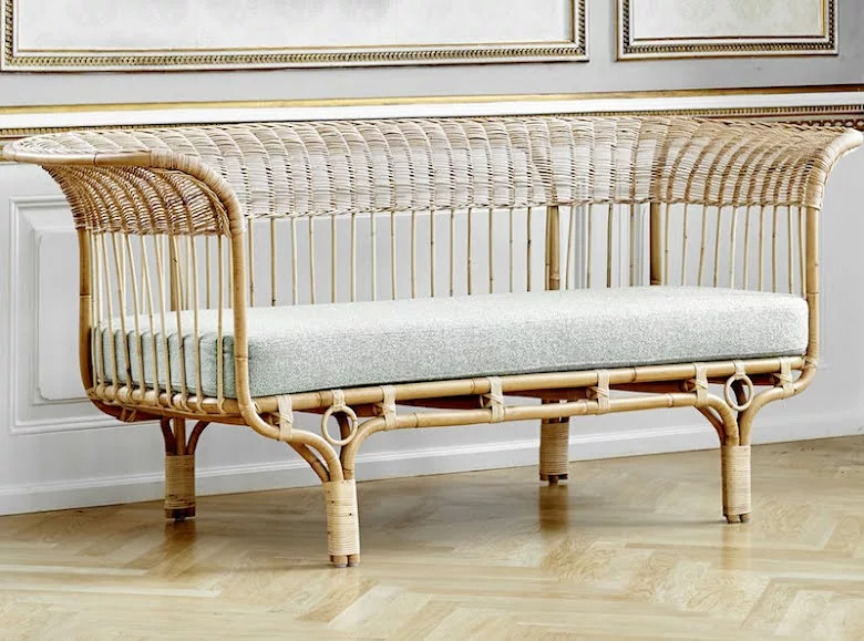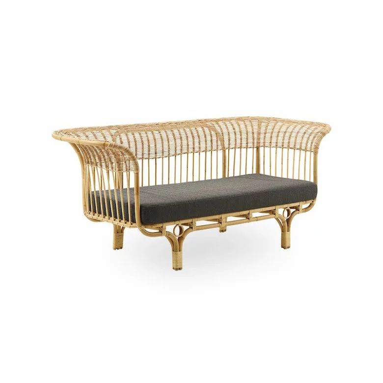 Soffan Belladonna för inomhusbruk Àr designad av Franco Albini och Àr handgjord av indonesisk hÄllbar rotting. Soffan Àr gjord i fÀrgen natur, som Àr original och passar alla sorters miljöer. Kvalificerade korgarbetare gör de fina bindningarna i sÀtet och ryggen pÄ en ram av rotting. Belladonna bidrar med ett naturligt vackert element i vardagsrummet eller i en sommarstuga. Den öppet flÀtade samt böjda ryggen ger soffan ett mycket elegant och estetiskt utseende samtidigt som konstruktionen av soffan skapar intrycket att sÀtet lyfts pÄ en piedestal, vilket ger möbeln en nÀstan majestÀtisk aura.