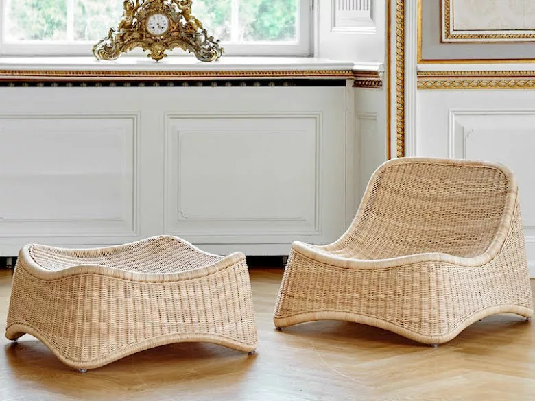 Chill designades av Nanna Ditzel. Denna vackra fåtölj med fotpall designades på sensommaren 1961. Det var den första möbeln som Nanna Ditzel designade efter sin mans Jørgen Ditzens död i april 1961. Fåtöljen är gjord av indonesisk hållbar rotting. Stolen är gjord i färgen natur som är original och lämplig för alla tillfällen. Sitsen och ryggen är flätad av naturlig rotting av skickliga korgarbetare. Chill rottingfåtölj är en låg loungestol utan armstöd. Denna stol passar in i ett hem med gott om plats. Chill-loungestolen gör sig snygg placerad vid eldstaden, i sovrummet eller i vinterträdgården. Stolen är stark, bekväm och lämplig för privat bruk. Chill-stolen fick ursprungligen namnet Firechair på grund av sin skulpturella installation som på ett nästan flytande sätt integrerar möblerna med kroppen och omgivningen.