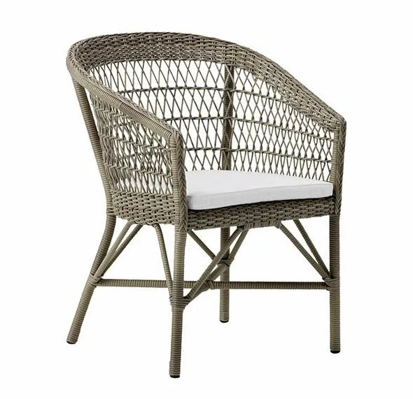 Emma Ă€r flĂ€tad av en stark syntetisk fiber över en aluminiumram. Det betyder att den kan anvĂ€ndas utomhus i alla vĂ€der och kommer att hĂ„lla sig fin Ă„r efter Ă„r. Dyna i vitt eller taupe ingĂ„r.Â