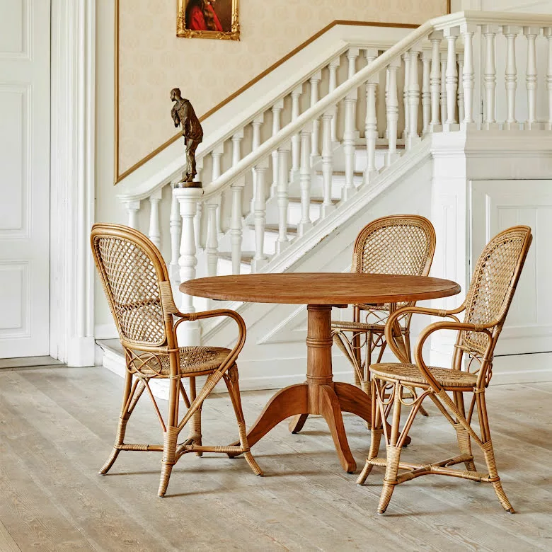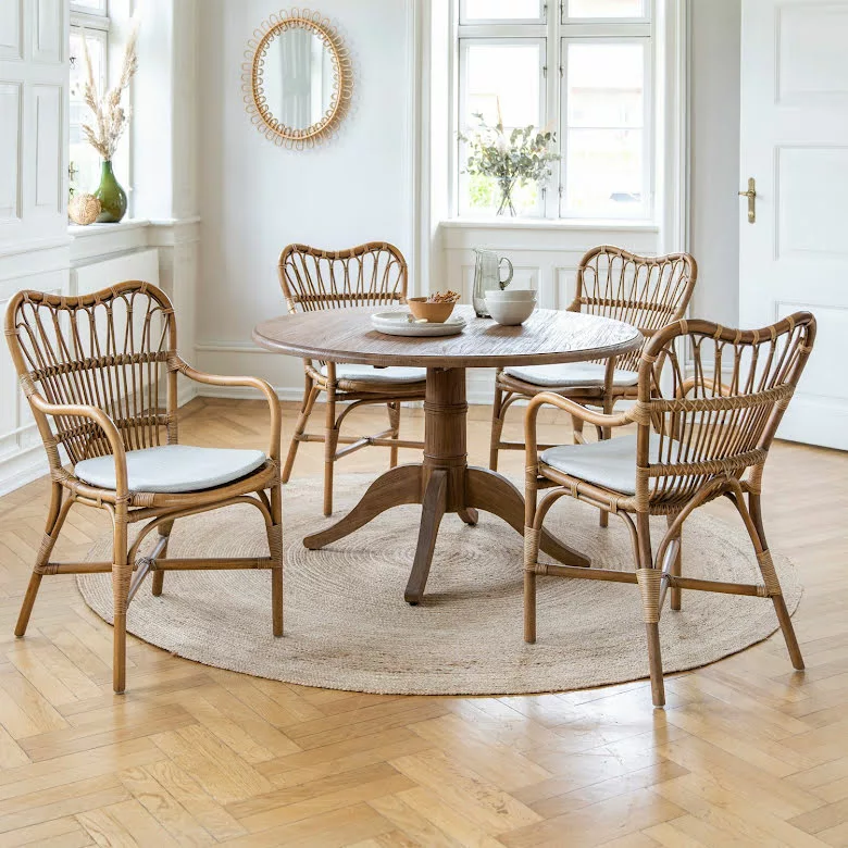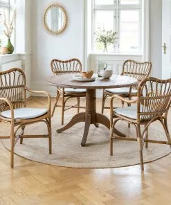 Ett runt matbord i teak. Sika-design tillverkar sina massiva trĂ€möbler i Ă„tervunnen teak vilket innebĂ€r att det kan förekomma sprickor och lagningar i trĂ€et. Bordet Ă€r obehandlat och en viss fĂ€rgvariation kan förekomma dĂ„ varje bord Ă€r unikt. Bilderna visar ett exempel pĂ„ hur bordet kan se ut.Â