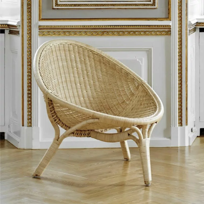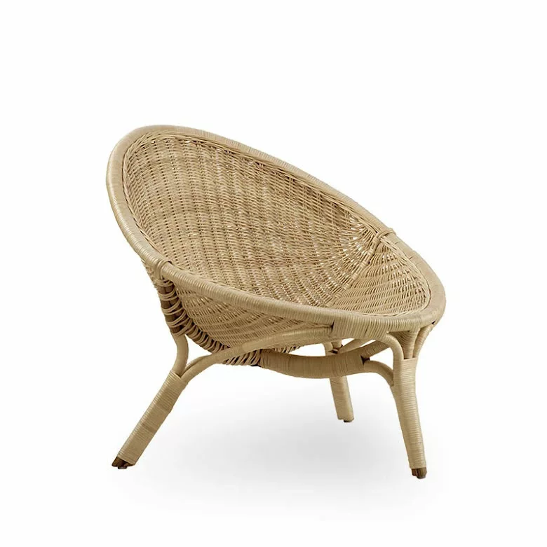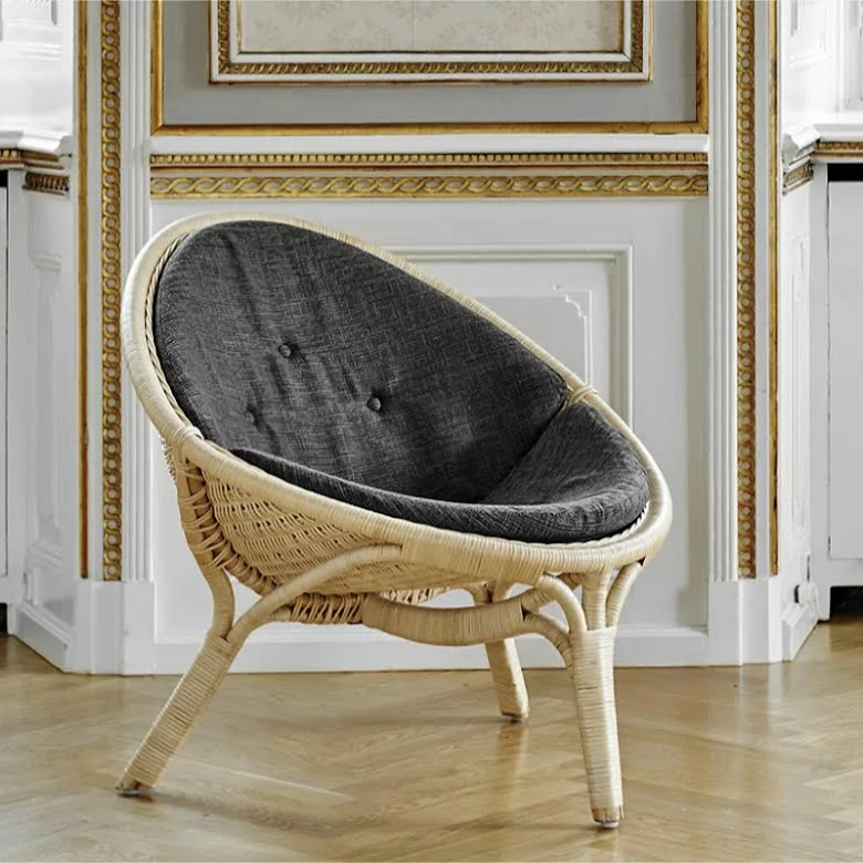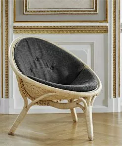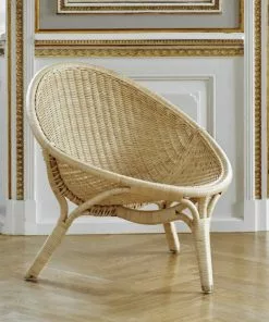 Rana fåtölj är designad av Nanna Ditzel och är handgjord i indonesisk hållbar rotting av danska Sika Design. Stolen är gjord i färgen natur som är original och lämplig för alla miljöer. Kvalificerade korgarbetare gör de fina bindningarna i sätet och baksidan av en ram av rotting. Nanna och Jørgen Ditzel började arbeta med korgmaterial i samarbete med den kända Wicker R. Wengler år 1950. Många internationella möbelarkitekter arbetade vid den tiden för att förena sätet och ryggen i en form av olika material. Ditzels experimentella förhållningssätt till material resulterade i denna trebenta stol som blev den första i en serie av liknande rottingstolar och gav korgmöbler en ny status inom inredning. Rana fåtöljen har vunnit utmärkelser på Carpentry Exhibition och på Triennale i Milan. Rana-stolen bidrar med ett naturligt inslag i vardagsrummet, sovrummet eller i stugan. En kudde kan köpas till Rana-stolen i valfritt tyg, uppsytt av Sika Design. Det går även att sy kudde i sitt eget tyg, kontakta oss i butiken för mer information om materialanvändning.