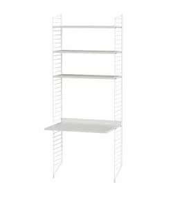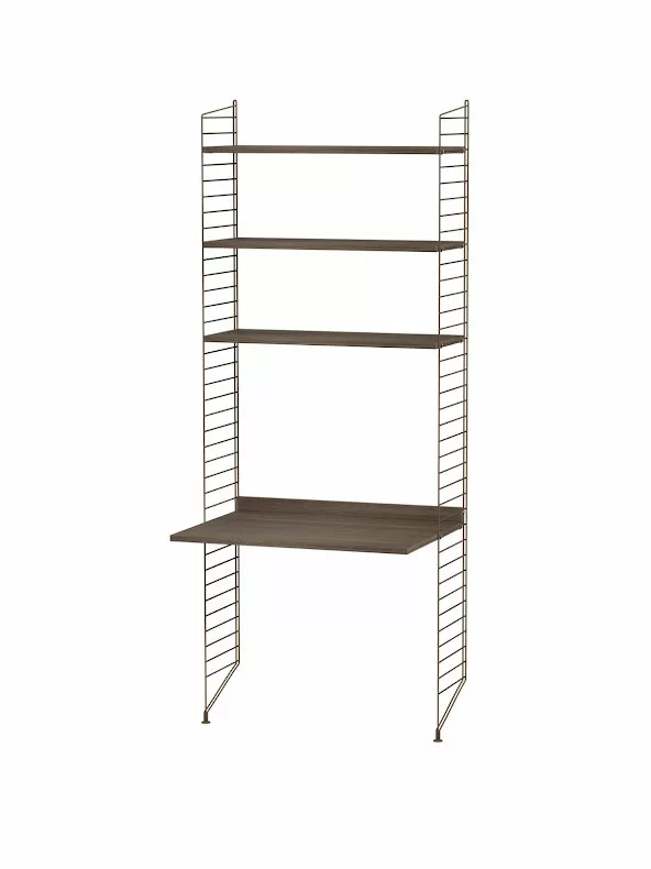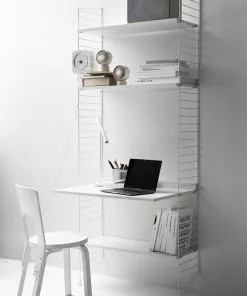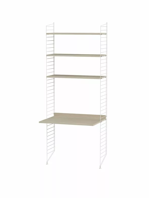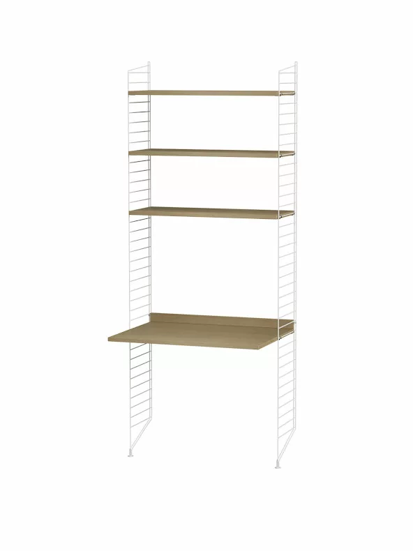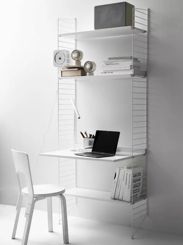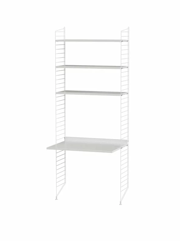 Oavsett om din arbetsyta Ă€r hemma eller pĂ„ kontoret sĂ„ har String en lösning som tĂ€cker alla dina behov. Den hĂ€r vĂ€ggmonterade kombinationen med en sektion har tre hyllplan och en arbetsskiva. Simpelt men elegant för en arbetsyta dĂ€r plats Ă€r knapp. HĂ€r ser du ett urval av varianter som denna kombination gĂ„r att bestĂ€llas i.Â