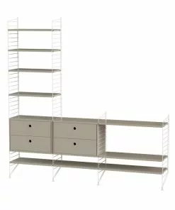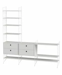 Den hÀr kombinationen öppnar upp för kreativitet. Förvara allt du behöver pÄ hyllplanen och i lÄdorna. AnvÀnd den lÀgre delen till att stÀlla din tv pÄ eller hÀng en tavla över för att göra ditt hyllsystem mer personligt.