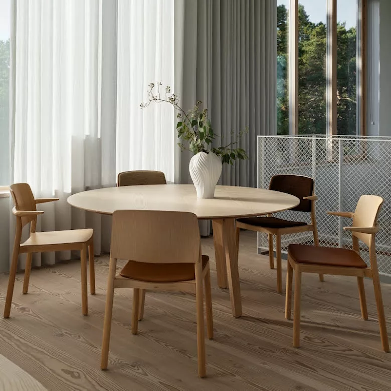 Divido är ett runt, härligt bord från svenska Swedese formgivet av Broberg & Ridderstråle. Dividos ben möter bordsskivan på ett naturligt och vackert sätt och bordet finns i tre storlekar.