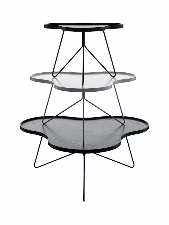 Material: Bordsskiva i lackerad ask, stativ i lackat stĂ„l.Â