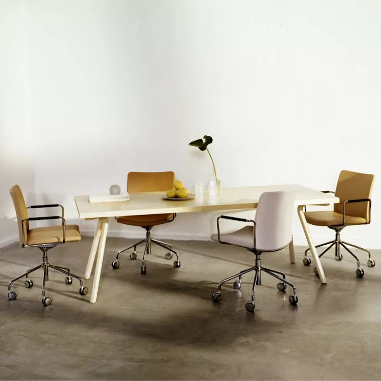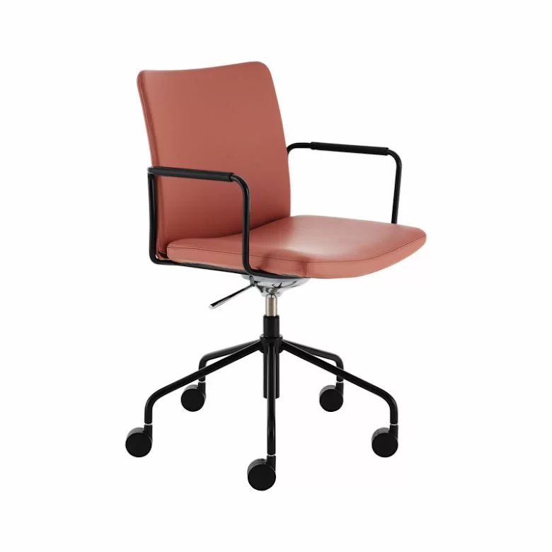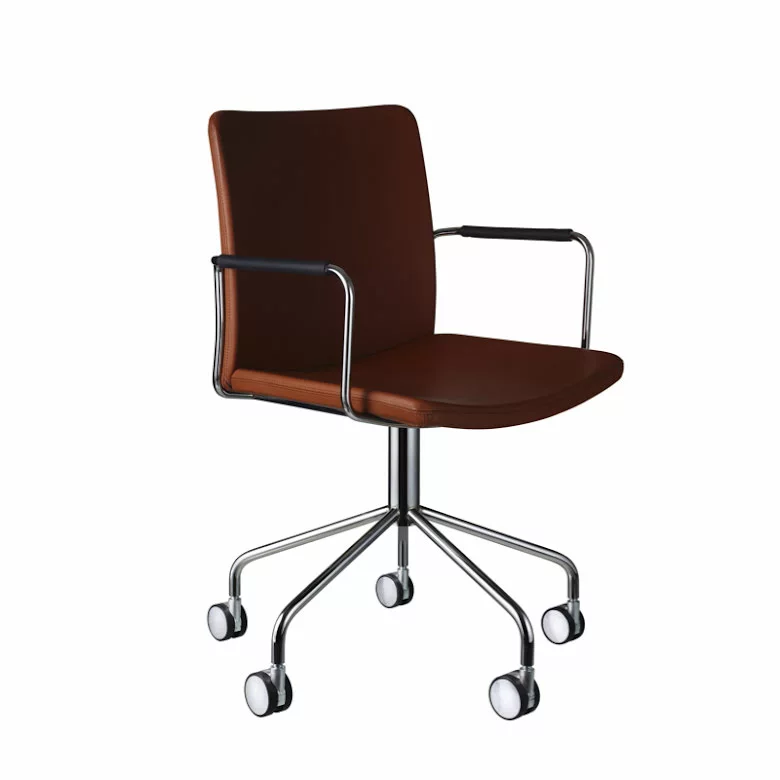 Stella karmstol med hjulstativ formgiven av Broberg & RidderstrĂ„le för svenska Swedese finns i mĂ„nga fĂ€rger och varianter som gör att den alltid passar in – vid skrivbordet, vĂ€ntrummet, matbordet, hos receptionisten eller VD:n.