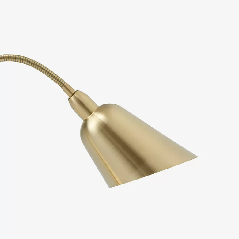 Material: Helt i mattpolerad mĂ€ssing eller mattpolerad mĂ€ssing med lackerad aluminium och stĂ„l, bas i gjutjĂ€rn, tvĂ„ meter svart tygsladd.Â
