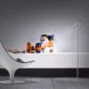 Material: Mattpolerad mässing med lackerad aluminium och stål, bas i gjutjärn, två meter svart tygsladd med strömbrytare.