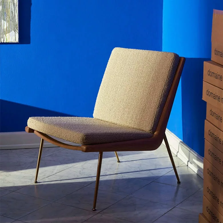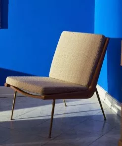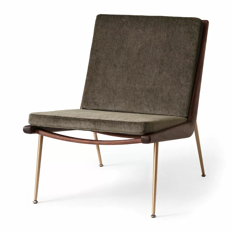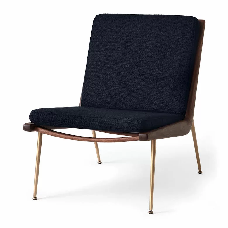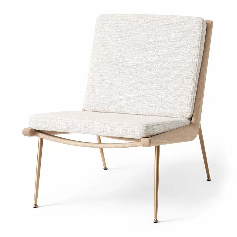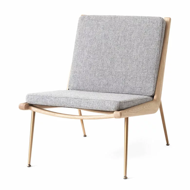 Loungefåtöljen Boomerang debuterade redan 1956. Fåtöljen av duon Hvidt & Mølgaard har en enkel, strömlinjeformad form. Från den handpolerade träramen, till dess smala mässings- eller rostfria ben, består Boomerang som ett mästerverk av dansk design. Boomerang finns att beställa antingen med eller utan armstöd.