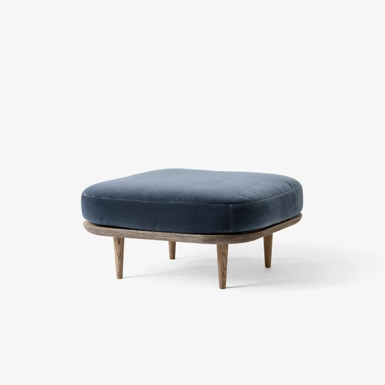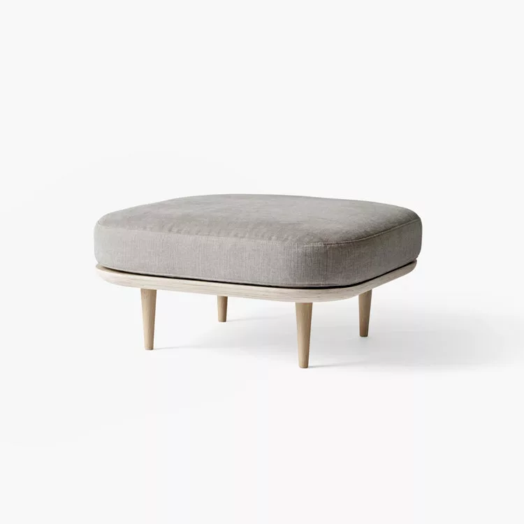 Fly puff ingÄr i en serie möbler bestÄende av 2 olika soffor, en fÄtölj, tvÄ bord och en puff. Det vackra underredet Àr av massiv, vitoljad eller rökt ek och du kan vÀlja mellan klÀdsel i grÄ eller naturfÀrgad Hot Madison, ett bomulls- och linnetyg, eller blÄ Harald sammet i 100% bomull.