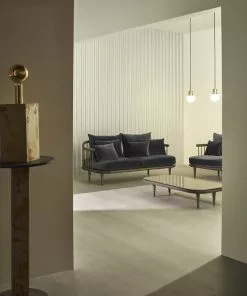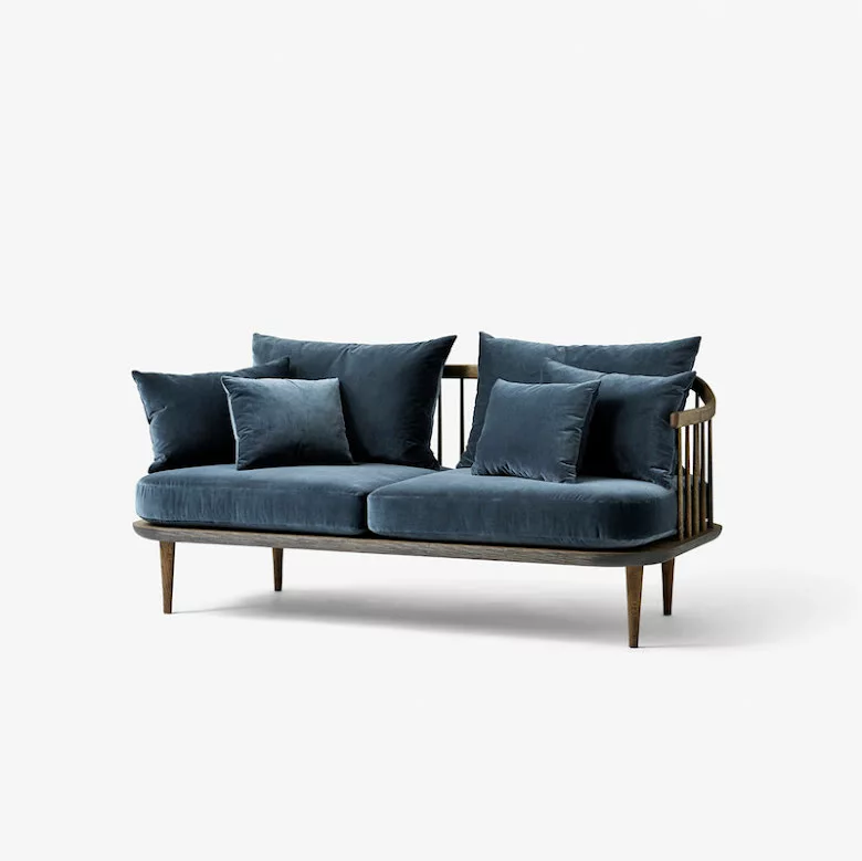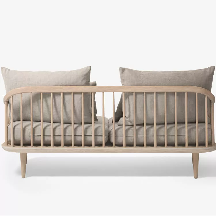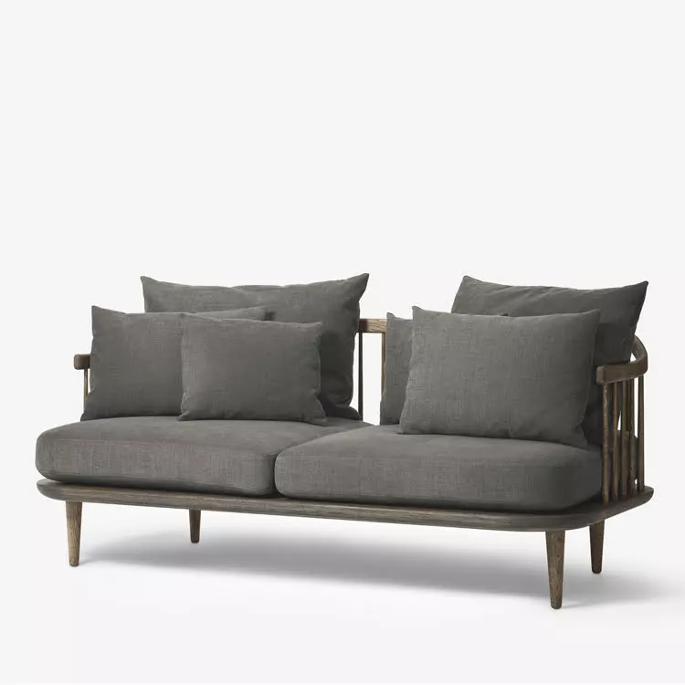 Fly soffa ingÄr i en serie möbler bestÄende av 2 olika soffor, en fÄtölj, tvÄ bord och en puff.Soffan har lösa ryggkuddar som anvÀndaren sjÀlv kan arrangera för bÀsta komfort. Det vackra underredet och ryggen Àr av massiv, vitoljad eller rökt ek.