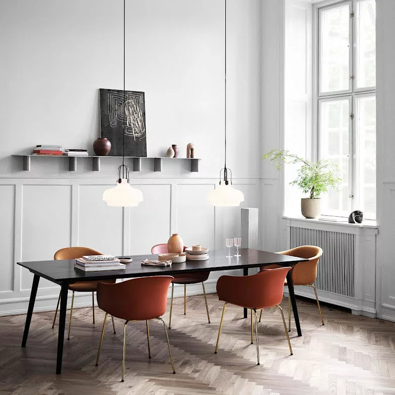 In Between från &Tradition är ett matbord som kombinerar modern industriell tillverkning med traditionellt hantverk. Formgivare är Sami Kallio. Bordet finns tre olika utföranden; rökt oljad ek, svartlackad ek samt klarlackad ek. In Between finns även som runt bord.