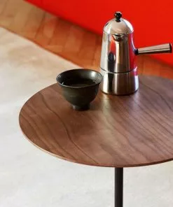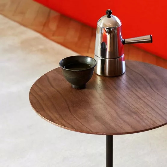 Undvik antagandet att ett bord behöver fyra ben, Nichetto bjuder på en tunn, oval eller sfärisk bordsskiva balanserad av en vacker oval marmorbas. Inspirerad av en lollypop vänd upp och ner, förfinade Nichetto formen att vara mer strömlinjeformad och ikonisk. Lato finns i två monokromatiska materialblandningar, en elfenbensit variant som elegant smälter in i de flesta inredningar, och en varm svart variant för den som önskar accentuera sin inredning. Båda marmorbaserna har en halvmatt finish som signalerar subtilitet. Lato finns i två storlekar, former och färger, med skiva i metall eller trä. Den varmsvarta har en skiva i valnöt och den elfenbetsvita kommer med en skiva i ek.