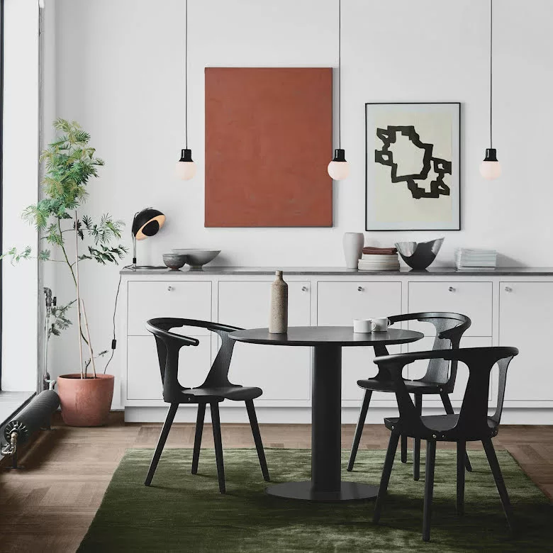 Designen för denna takpendel kommer frÄn gatlyktor i vÀrldens storstÀder. Duon bakom Norm Architects, Kasper RÞnn och Jonas Bjerre-Poulsen, började fascinera sig av formen; den karakteristiska gjutjÀrnsskivan, med en halvtransparent glaskula vid basen. Tillbaka i studion tog Kasper och Jonas loss gatlampan frÄn dess ursprungliga anvÀndning och överförde formen och kombinationen av material för att designa en enastÄende inomhuspendel. Lampan finns i tvÄ utföranden; i spunnen och polerad mÀssing eller i frÀst och polerad marmor. GlasskÀrmen Àr gjord av munblÄst och satinerat opalglas.