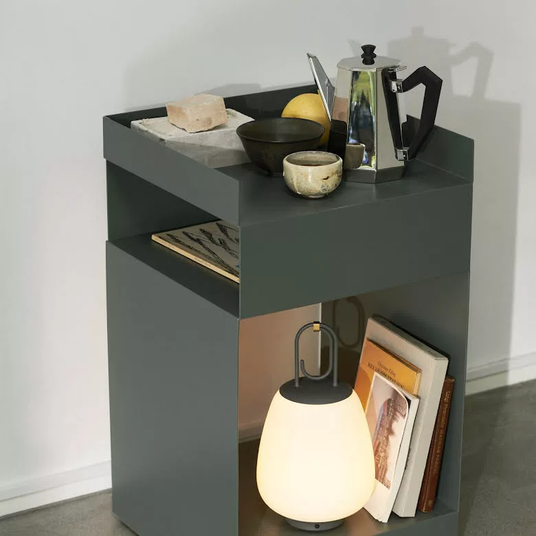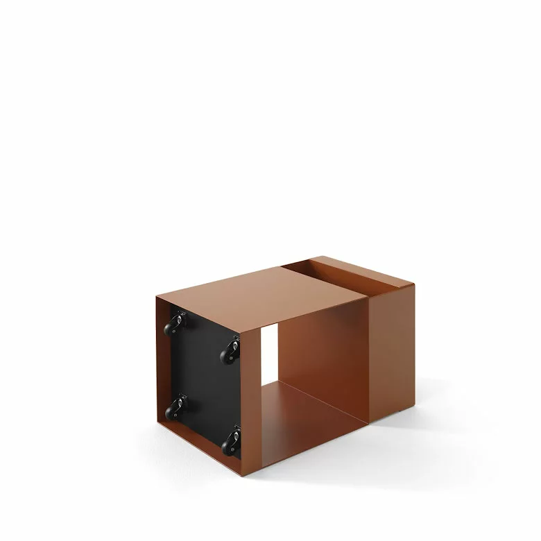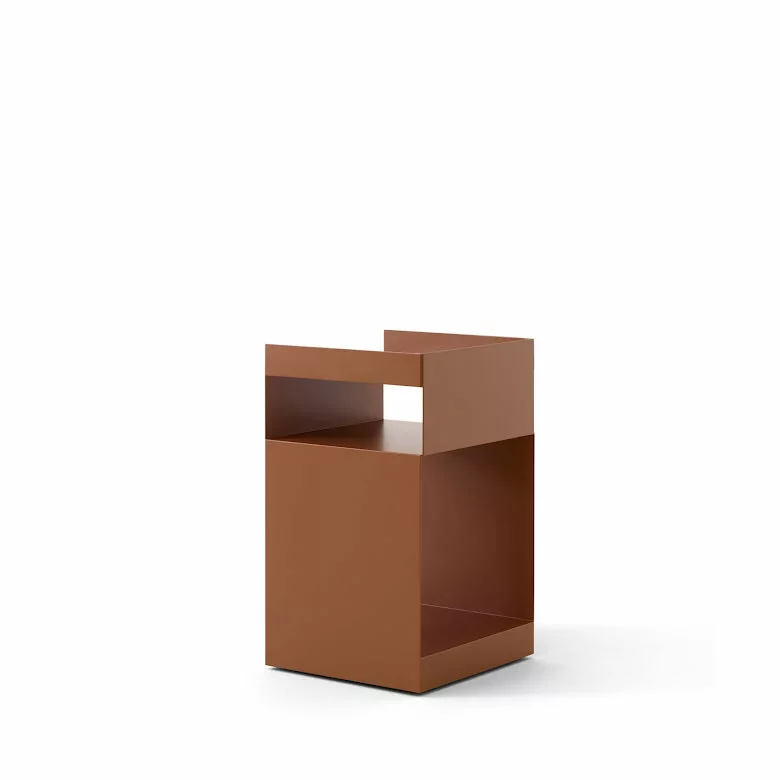 Rotates ansprĂ„kslösa utseende motsĂ€ger dess mycket funktionella design. Inspirerad av den japanska konsten origami Ă€r bordet tillverkat av en enda plĂ„t av pulverlackerat stĂ„l som sedan svets i form. Designad för att passa en mĂ€ngd olika Ă€ndamĂ„l: frĂ„n en kontorsvagn, till ett nattduksbord eller badrumsförvaring. Rotates asymmetriska, öppna form fungerar i vilket utrymme som helst. Rotate gĂ„r att bestĂ€lla i fyra varma, jordnĂ€ra toner âTerrakotta, Hunter, Ivory och Merlot.