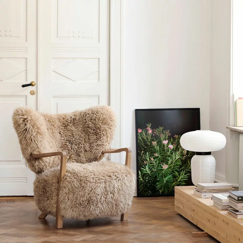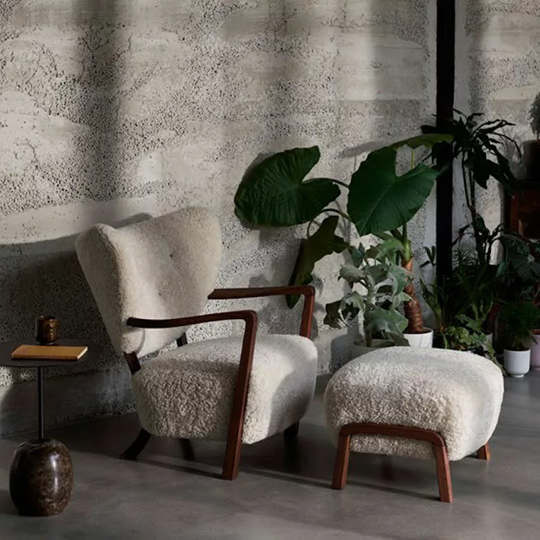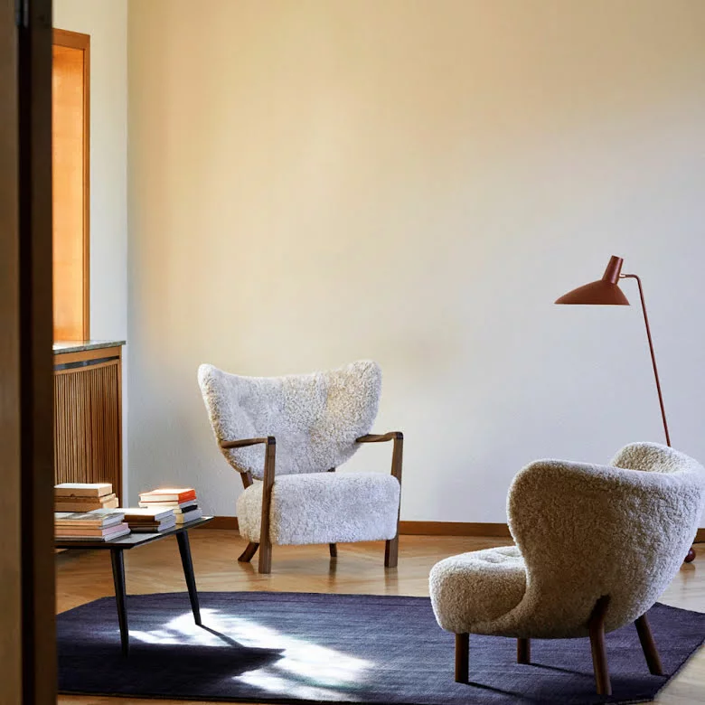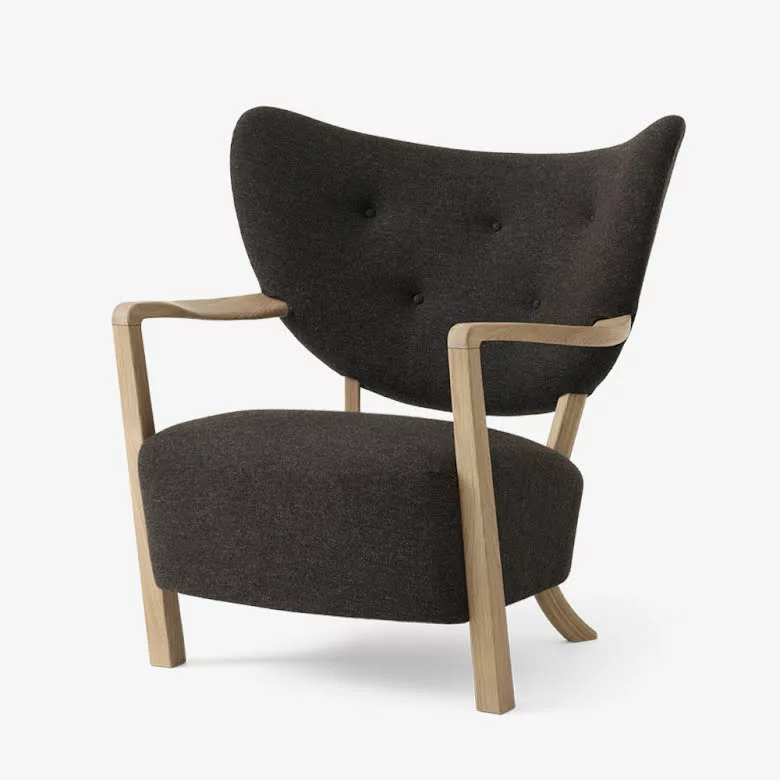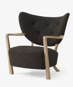 Wulff är en loungefåtölj från &Tradition vars form hyllar 1930-talets handgjorda design. Wulffs skulpturala armstöd och vingformade ryggstöd tillverkades först i en traditionell möbelverkstad och speglar den begynnande dialogen mellan snickarmästare och arkitekter, som lade grunden till guldåldern för dansk modern design. Wulff går att få i flera olika tyger med träbenen och armstöden kommer i antingen oljad valnöt eller oljad ek. Hos oss finner du ett urval av utföranden på Wulf. Det går även att beställa en fotpall till din fåtölj. Tveka inte att kontakta oss ifall du vill beställa denna moderna klassiker i ett annat tyg.