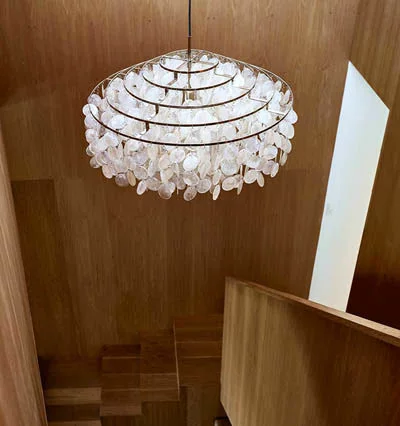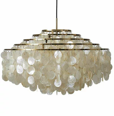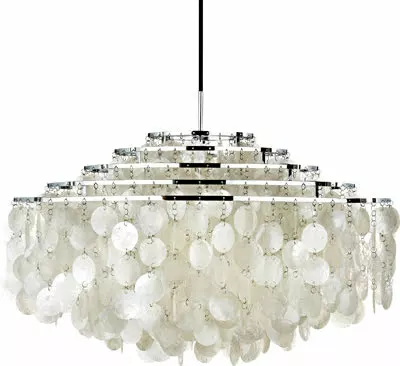 Fun pendel frÄn Verpan bestÄr av hÀngande pÀrlemordiskar och finns i olika storlekar. Klassisk vacker taklampa som ger ett hÀrligt ljus. Designad av Verner Panton Är 1964. Finns med krom eller mÀssingsdetaljer. Lampan kommer omonterad.